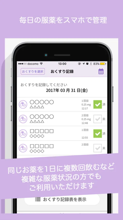 同じお薬を1日に複数回飲む場合や1日に複数の種類の服薬をされている方もご利用いただけます。