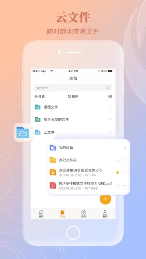 ● 从iTunes、电子邮件、Sarfari和支持“打开方式”的应用程序中打开OFD文档