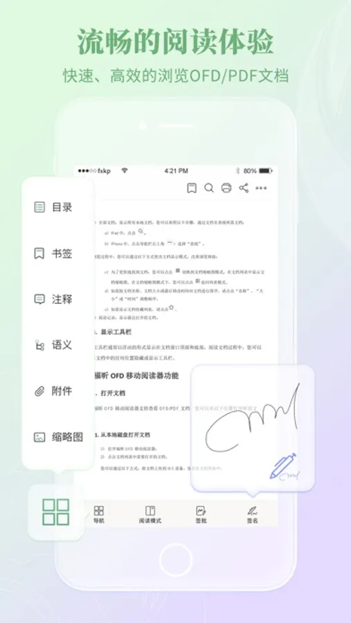 您是否还在寻找一款免费的同时支持OFD/PDF双格式阅读器?不妨试试福昕OFD移动阅读器!福昕OFD移动阅读器是一款专为iOS系统设计的版式阅读器,支持OFD/PDF双格式,能实现对OFD及PDF文档打开、阅读、标注、大纲、OFD语义导览以及分享打印等功能,具有体积小巧、启动快速、安全性高及性能稳定等优点。通过福昕顶尖的技术,让用户在移动设备中也能享受非凡的OFD/PDF阅读体验。