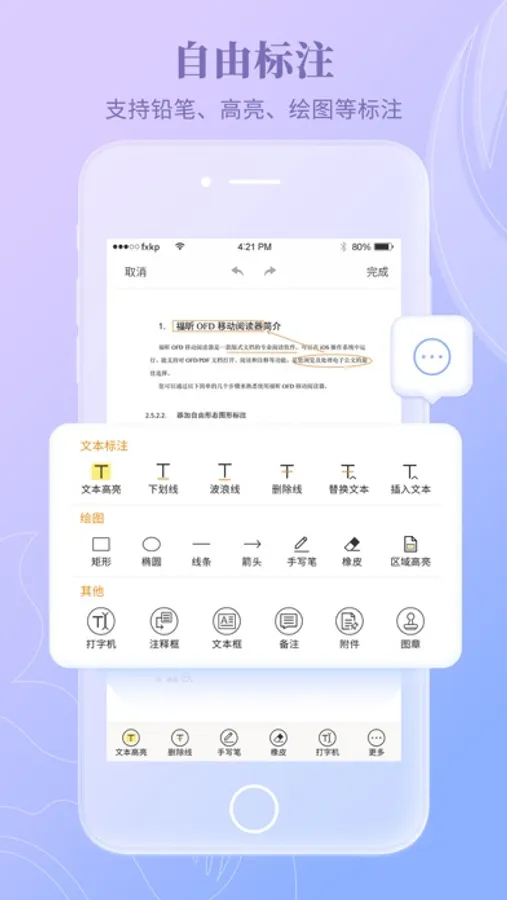 ● 在文档中添加高亮、下划线、删除线、直线、绘图等多种注释