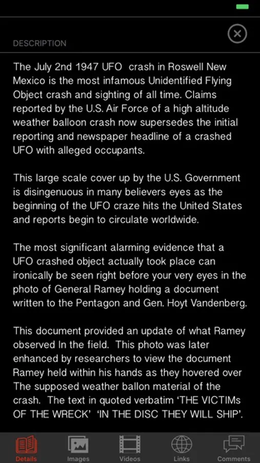 YOUFO is the worlds first cross pollination smart phone app to connect users worldwide to each other. Uploader's are presented with a platform to share their experiences via use of the map by posting their sightings and abduction encounters. With a selection of 7 close encounters, there are no boundaries or social stigmas attached to the user as they can wish to remain anonymous in their postings. Users are encouraged to engage in weekly blog articles, podcasts, and videos to stimulate their interaction with YOUFO and the ufology community to its fullest experience.