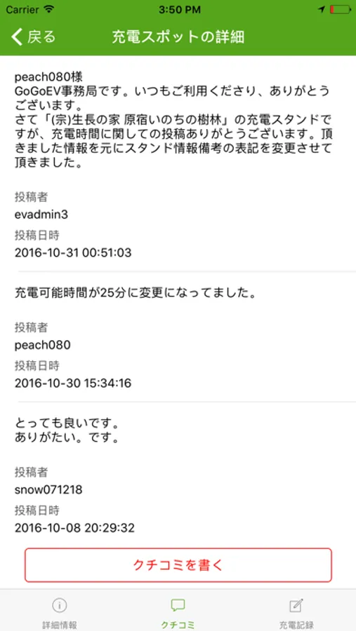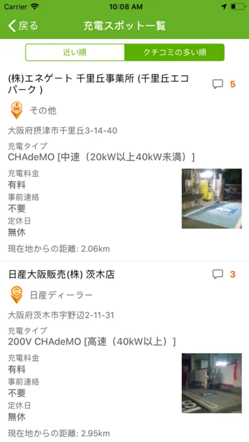 充電器の故障、利用にあたっての注意点やそのスポットの特徴(写真や文字)など、GoGoEVユーザによるクチコミのおかげで充電スポットを探すときに役に立つ情報を得ることができます。