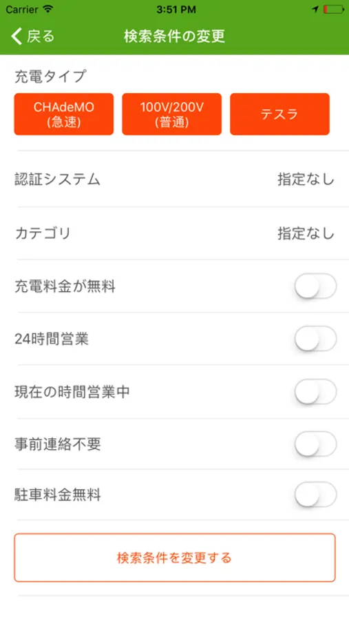 またカテゴリ指定、認証ネットワークの指定も細かくできるためお好みの充電スポットを探すことができます。