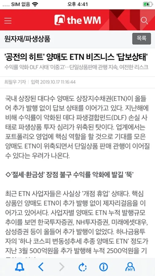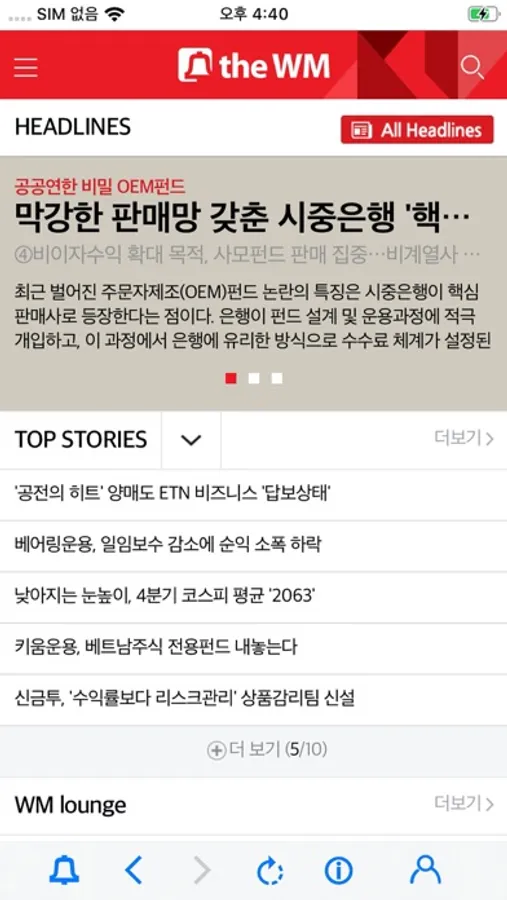 theWM은 머니투데이 더벨이 금융상품 평가회사인 한국펀드평가와 KIS채권평가, 기업/재무정보서비스 제공업체인 Wisefn과 함께 만든 뉴스와 데이터 융합형 신개념 Wealth Management 정보서비스입니다. theWM은 금융소비자에게는 "믿고 거래할 수 있는 금융회사", "믿고 살 수 있는 금융상품"을 고르는 "눈"이 되고, 금융회사와 금융업계 종사자에게는 고객창출과 수익창출에 이르는 "길라잡이"가 될 것입니다.