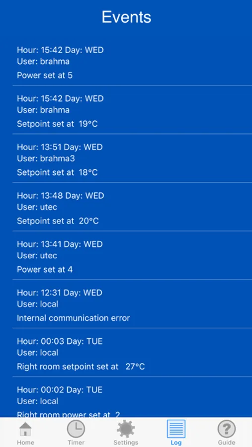 Remote users can also program stove, modifying main parameters as operation set point and power, operation mode and timer. Only one remote user at once is allowed to program stove; during remote programming performed by an user, other remote users have readonly permission. Local users have higher controlling priority than remote users.