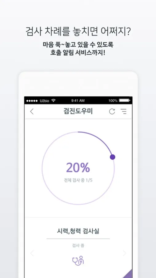 - 검진 상황 안내: 앞으로 남은 검사는 무엇인지, 내 앞에 몇 명이나 기다리고 있는지 검사실 상황을 확인할 수 있어요.