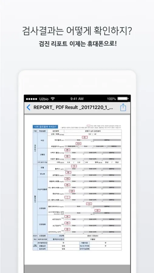 병원에서 받은 검사결과와 건강검진 결과 리포트가 휴대폰으로 쏙쏙 들어와서 쉽고 빠르게, 언제 어디서나 검사결과를 확인할 수 있습니다.
