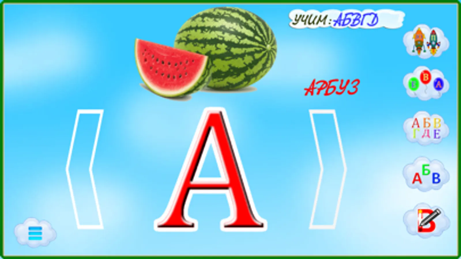 В этой игре ребенок знакомится с буквами, слышит их звуки и образы. На каждую букву дается картинка начинающаяся с этой буквы. Сначала произносится звук буквы а затем название предмета начинающегося на эту букву, таким образом ребенок запоминает кроме буквы еще и новое слово. С помощью стрелок вправо и влево малыш сам листает буквы повторяя за диктором и запоминая их. Для легкости запоминания в каждом уроке дается только несколько букв для изучения. Переход к новому уроку (с новыми буквами) происходит автоматически после успешной сдачи изучаемых и уже прошедших букв в игре "Проверь себя", обратите внимание, допускается только одна ошибка. Благодаря этому, ребенок переходит к следующим буквам, только после освоения предыдущих букв.