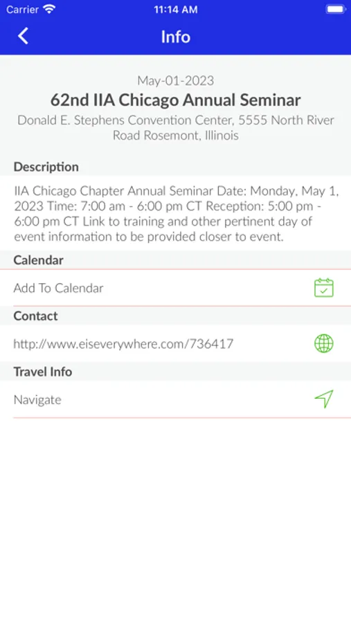 IIA Events is the official app for IIA Headquarters and IIA Chapters to host their events Use this app to: - Easily view event info and more right on your mobile device - Connect with fellow attendees, speakers, and exhibitors - Download event-related content