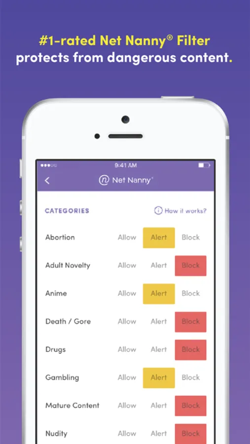 Not all filters are created equal. Unlike most filters that block entire sites, the award-winning Net Nanny® filtering technology looks at individual web page content and determines in real time if it is safe for your child. You’ll have complete control over the settings that will guide the monitoring, and appropriate filtering, of your kids’ devices.