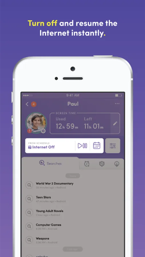 Do you ever argue with your child when it’s time for dinner or when they have had too much screen time? From your phone, Net Nanny® enables you to turn off the Internet instantly so you can get their attention and limit screen time.