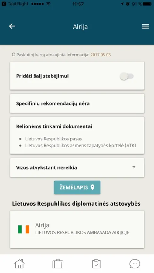 • Lietuvos atstovybių užsienyje kontaktus bei kelionių rekomendacijas bus galima matyti ir be interneto ryšio („offline” režimu)