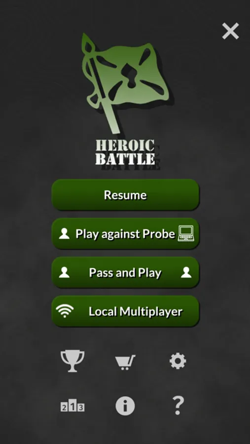 Heroic Battle is a challenging strategy board game that requires logic, deception and memory. Play against a friend on your local Wi-Fi network or a computer opponent: Probe, the Computer Stratego World Champion. You can start a new game in seconds and pause a game to complete at a later time.