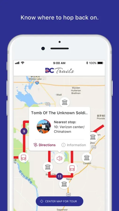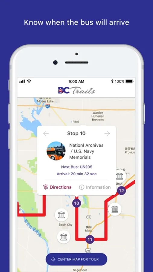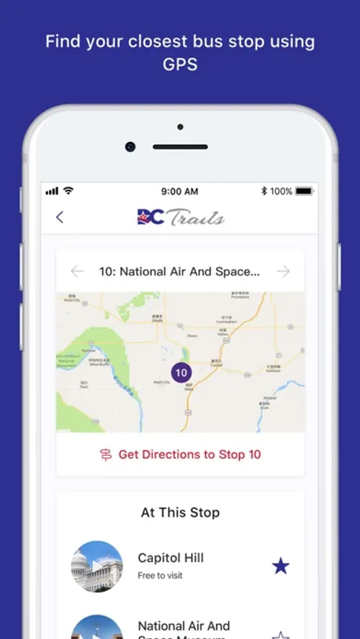 · Using GPS, we help you find the nearest DC Trails bus stop and the estimated time of arrival of the next tour bus, allowing you to cover more ground and see as much as possible.