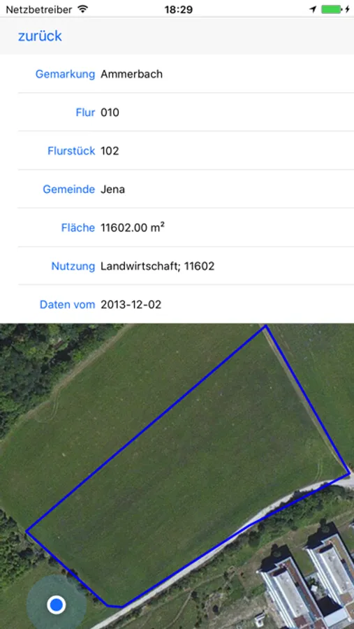Mit dieser App können Sie sämtliche Flurstücke und deren Grenzen auf dem Smartphone anschauen. Sie können anhand Ihres eigenen GPS Standortes problemlos erfassen auf welchem Flurstück Sie sich befinden oder Grundstücksgrenzen aufnehmen. Zusätzlich sind zu jedem Flurstück wertvolle Zusatzinfo zum Grundstück (wie Fläche, Nutzung etc.) hinterlegt.