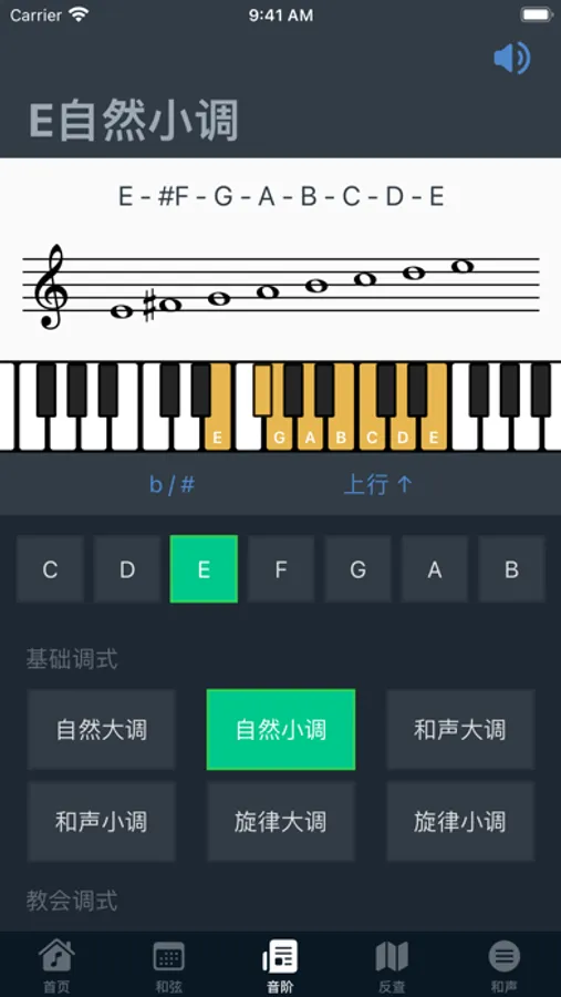 -【音阶库】预设30种调式,包括:自然大小调、和声大小调、教会调式、五声调式、七声调式、其他调式等。查询音阶对应音高