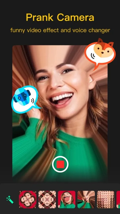 • Prank video camera, you can capture funny video with prank video effects and voice changer
