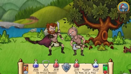 * Build up your knight through 50 character levels and learn powerful abilities like 'Cleave' and 'Smite'