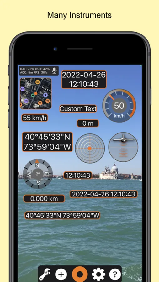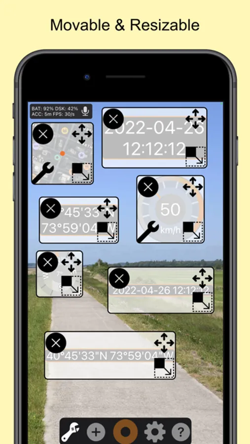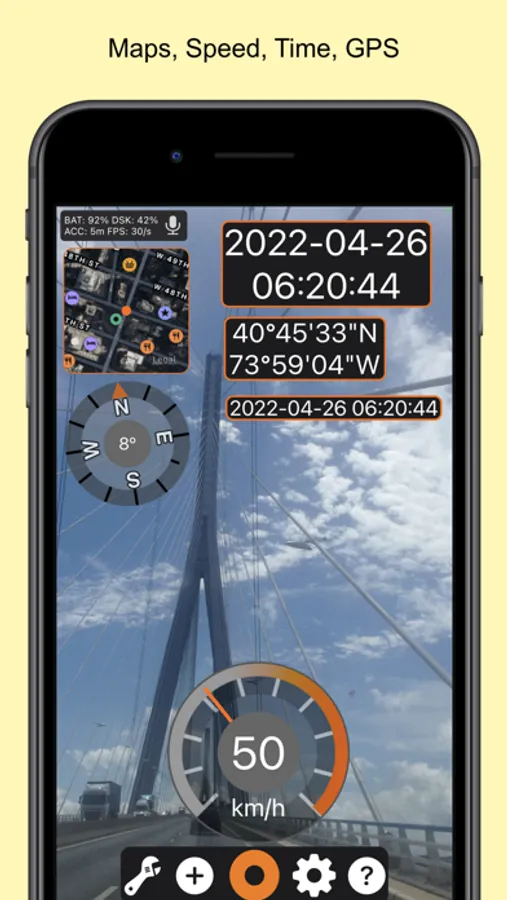 Dash Cam - Car Video Camcorder is an accident camera which records the traffic situation continuously in a loop. When it detects a high acceleration, be it an accident or just strong braking, it stores the last minute into the video library. It allows to render all important telemetry data, such as speed, location, pitch, heading, distance, time, date, etc. directly into your video while it is recorded with your devices' camera. Thus any manipulation is nearly impossible. The 'head up display' instruments are freely configurable in size and they are movable in the picture frame.