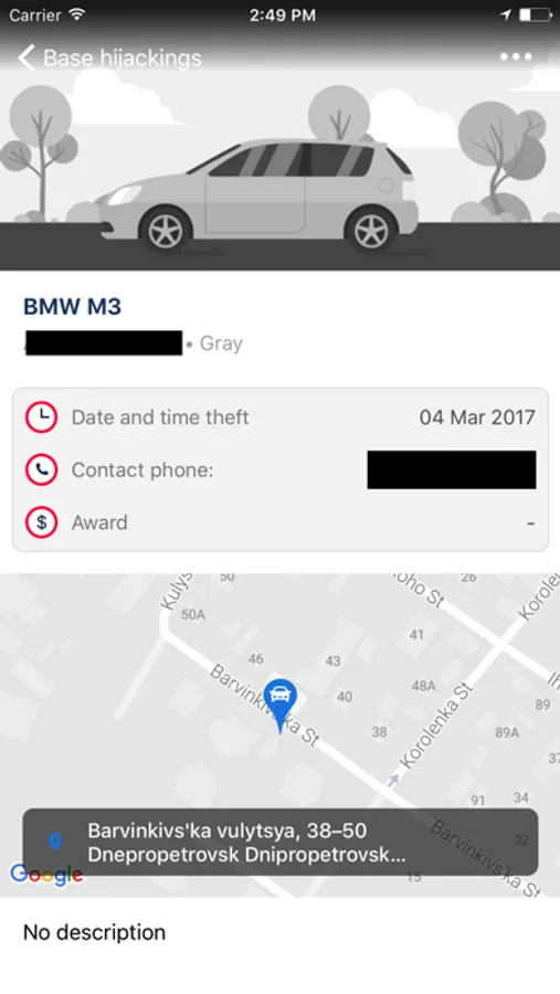 If you are the owner of a stolen car, other users ReCar can send you the pictures and the location of vehicles that correspond to your description, as well as to inform the important information in a personal chat or by phone.