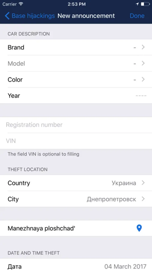 ReCar brings people to search for stolen cars. The message about the driving away(carjacking), will receive all of the local users of the application. Place position on a map the auto with photos and chat correspondence of users, messages and phone calls - all this is available to users ReCar.
