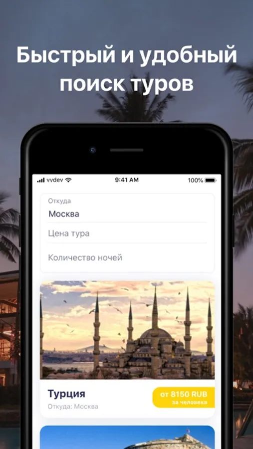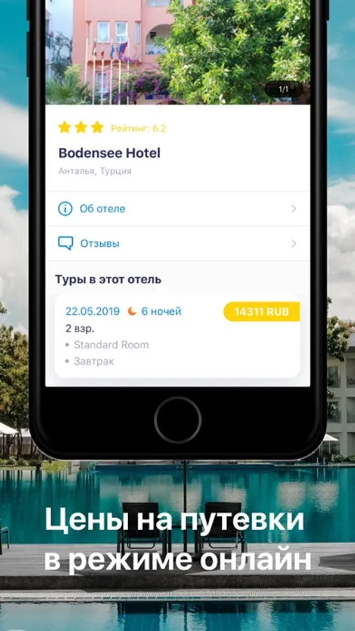 Наше приложение обладает всеми достоинствами поиска к которому Вы привыкли, поиск туров обладает массой фильтров, описанием отелей, возможностью просмотра местоположения отеля на карте, отзывов туристов и многими другими функциями.