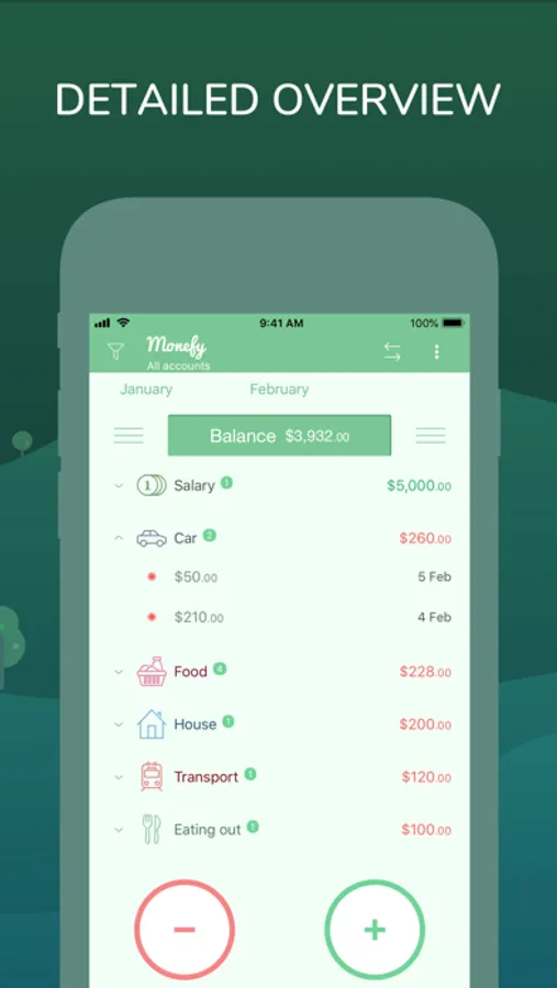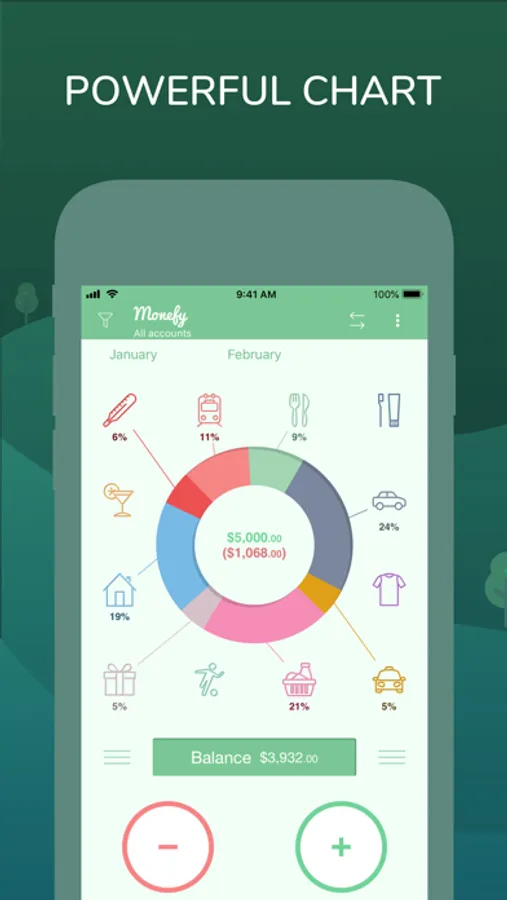 3. See your spending distribution on the nice and informative chart or get detailed information from the records list