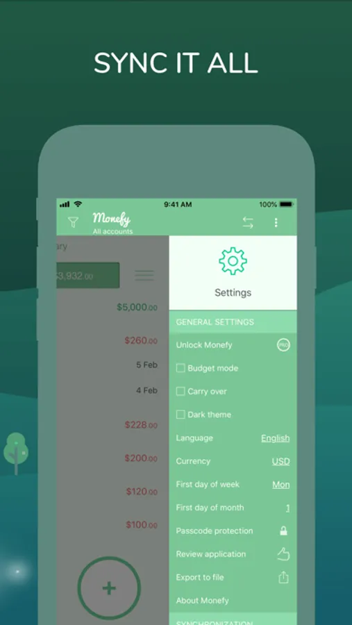 Do you own a phone and a tablet? Or you want to track expenses together with your significant other? Monefy fits the best. You can safely synchronize data between devices using your own Google Drive or Dropbox account. Create or change records, add new categories or delete old ones and they will be present on another devices right away!