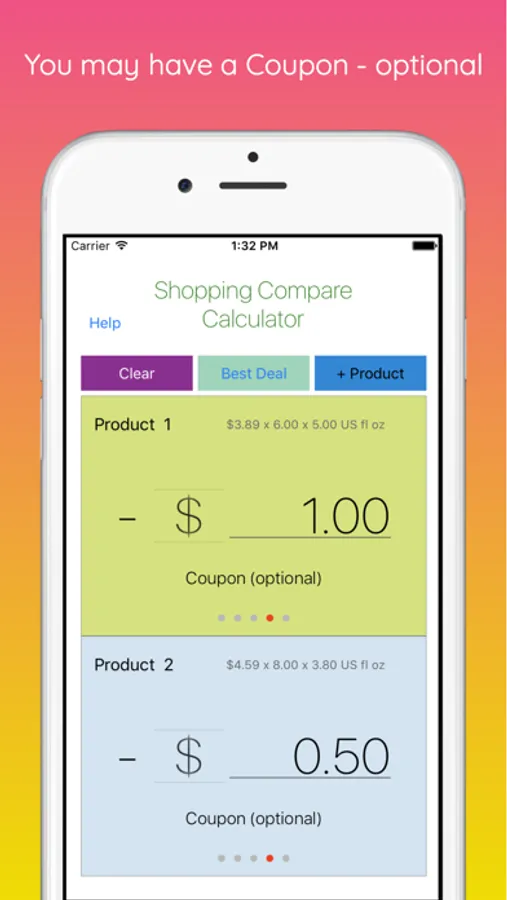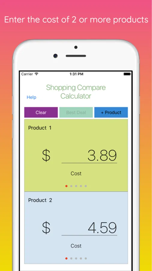 Shopping Compare Calculator is an App that let's you compare common items' price, volume and quantity giving you a clear indication which item that you wish to purchase is in-fact the best deal!