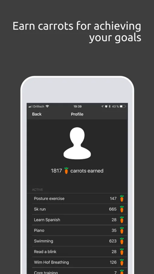 - Earn carrots for achieving your goals