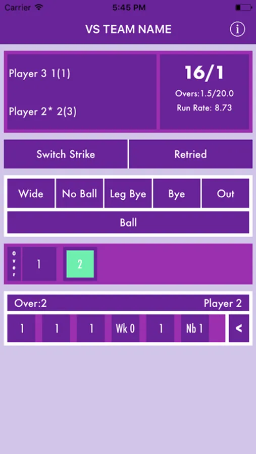 - Each ball is displayed with scored runs or extras, makes it easy to get glance of each over.