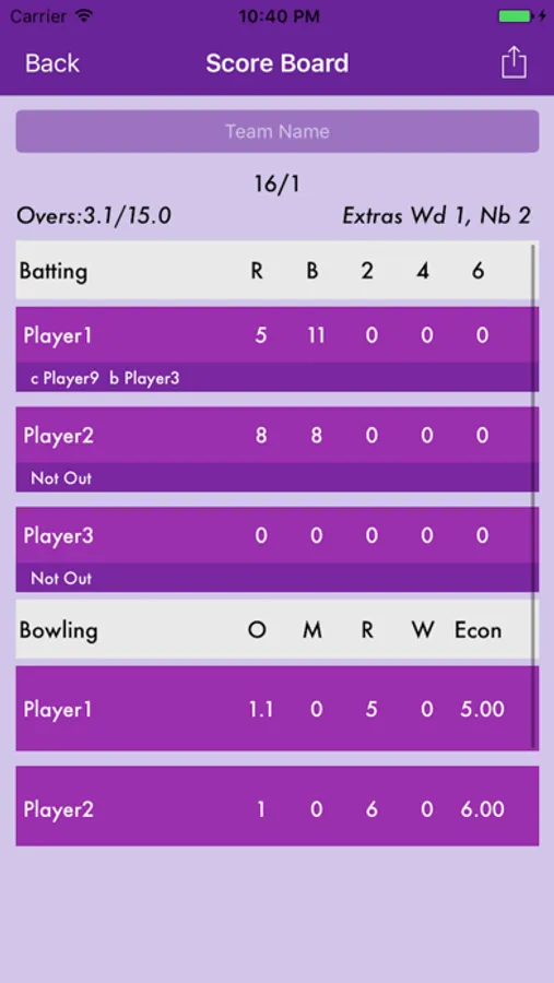 Excellent user interface. We need options to add more than 11 players. We need an option to edit the number of overs in case the game is reduced due to rain or weather or time constraints.