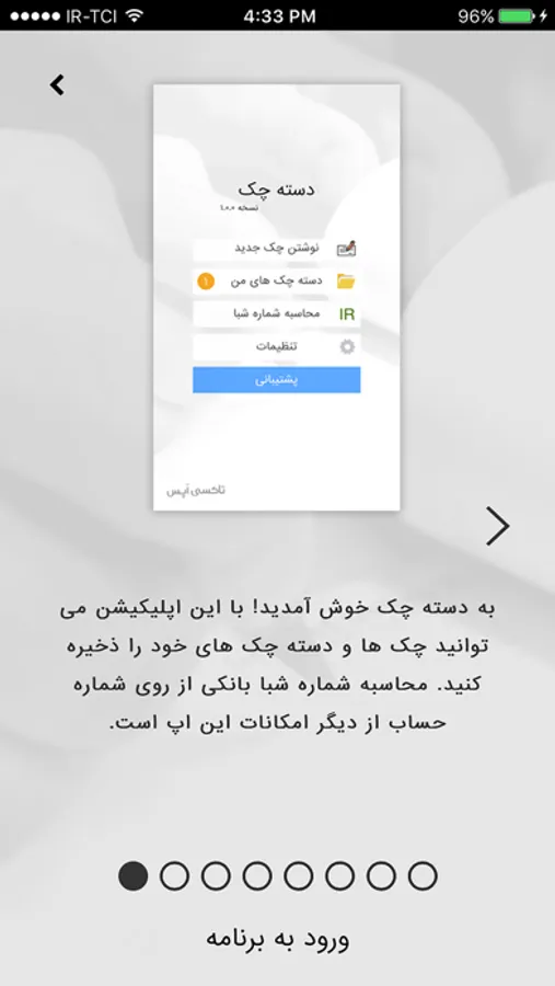 اپلیکیشن دسته چک به شما این امکان را می دهد که دسته چک بانکی خود را مدیریت کنید و رسید چاپی چک را به صورت pdf دریافت نمایید. علاوه بر تعرف و نگهداری دسته چک این اپ برای شما شماره شبای بانک های مختلف را نیز محاسبه می کند.