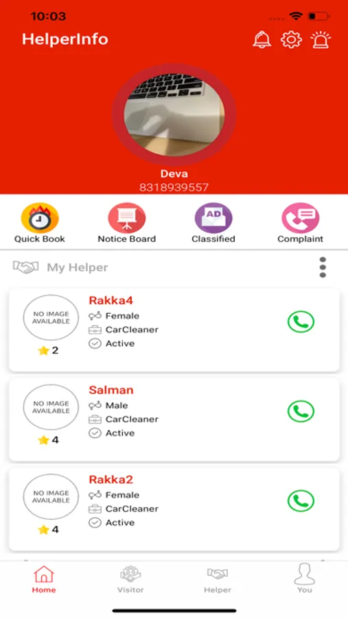●Search helper: It's very easy to find a helper for yourself just by clicking search helper you will get the details of all helper coming to the apartment with their contact details and rating. You can easily contact them by clicking on the call button available there.