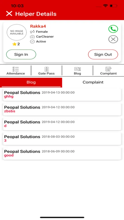 ●Real time attendance system: As soon as the maid enters and exits the society from the apartment, a notification comes to Application. As well as, we can check the feedback of a helper linked under your apartment under blog and complaint mentioned in app.