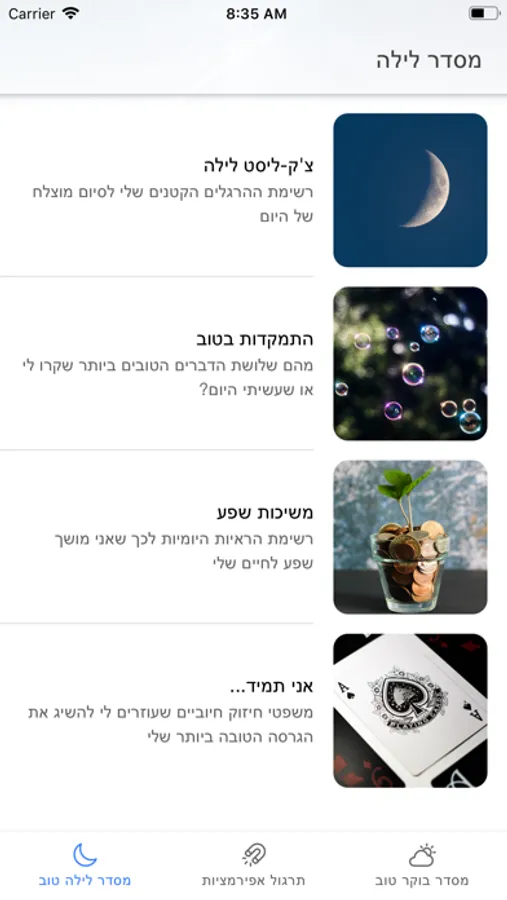 The use of the application is simple and convenient and suitable for any time - if it is at a predetermined time (such as immediately after waking up in the morning), or at any other time like waiting on line or traveling to work.