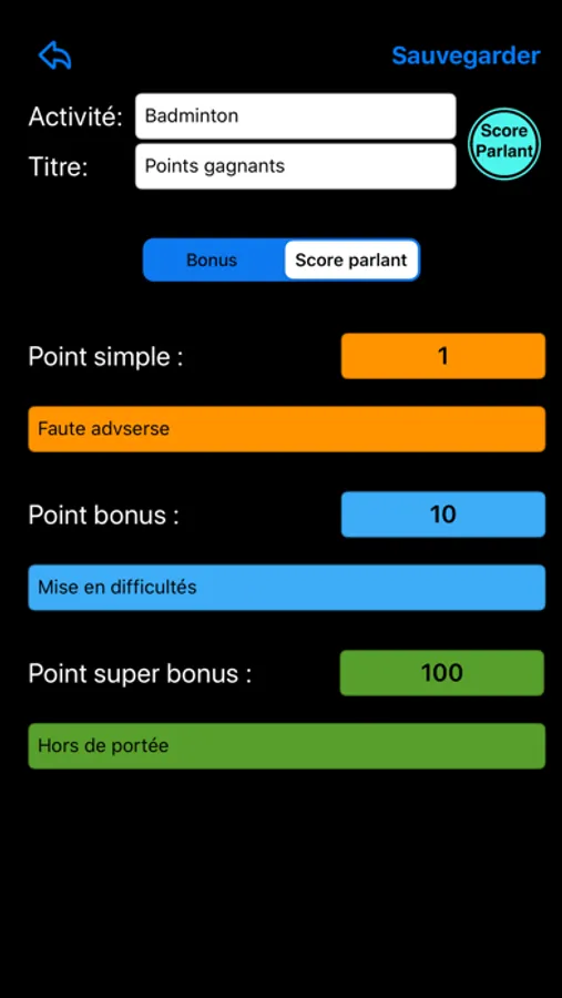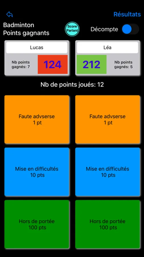 Cette application permet de mettre en oeuvre facilement les situations de score parlant (1, 10, 100 pts)