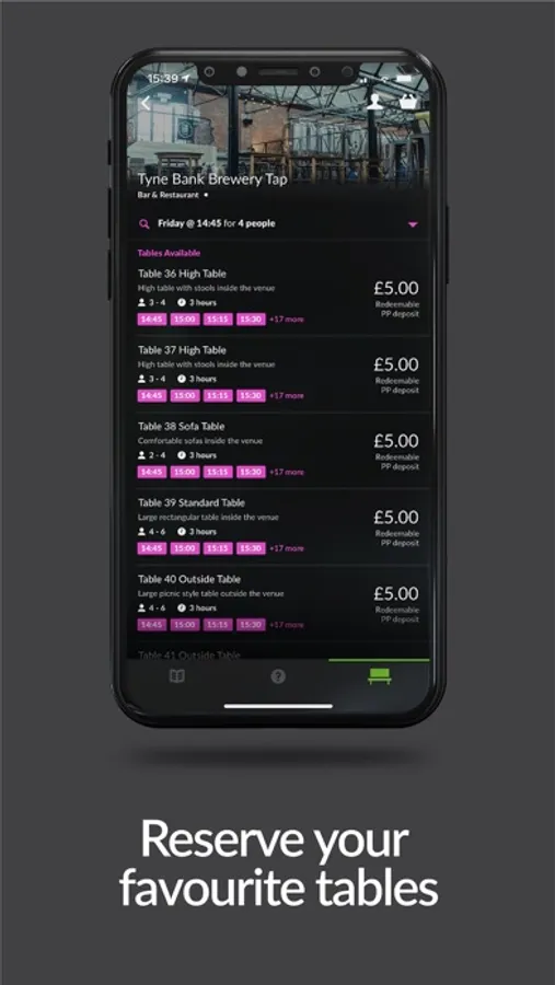 You will be notified on the app when your order is ready. Table service is enabled in some venue's, or collection at the bar in others.