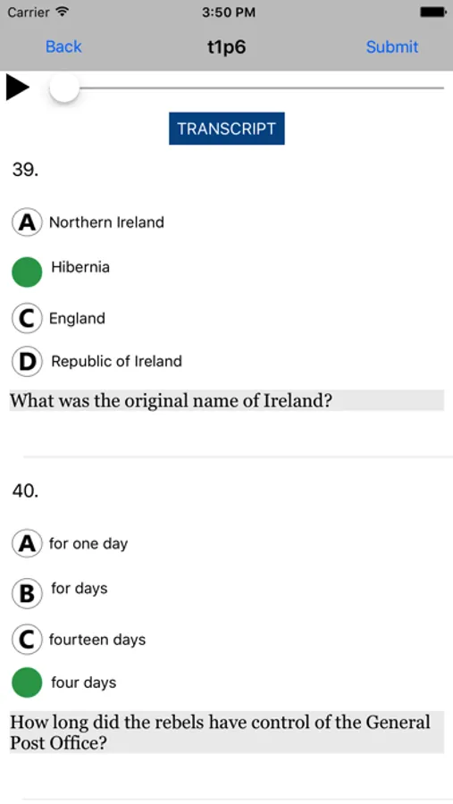 On The Application: You will hear two audios with 4 questions each. You will need to choose the best response.