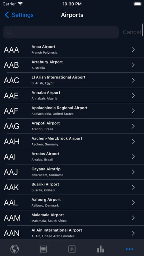 YourFlights comes with an extensive airport database of more than 8,500 airports.