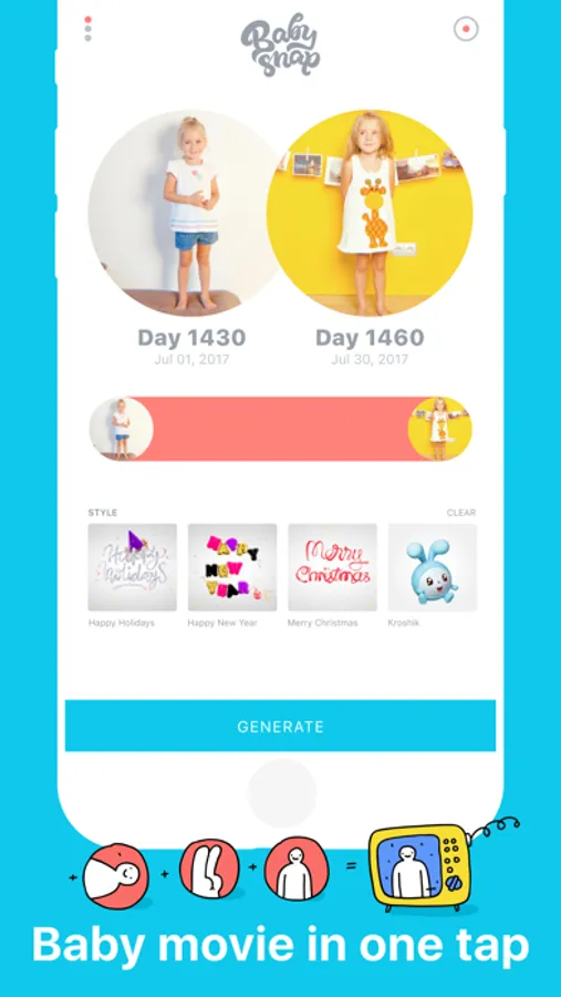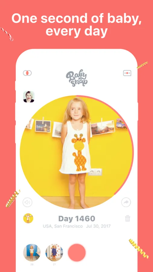 No more boring photos or videos. Baby Snap helps you to get the big picture: the whole time-lapse of your baby. One second every day, one tap to make a movie!