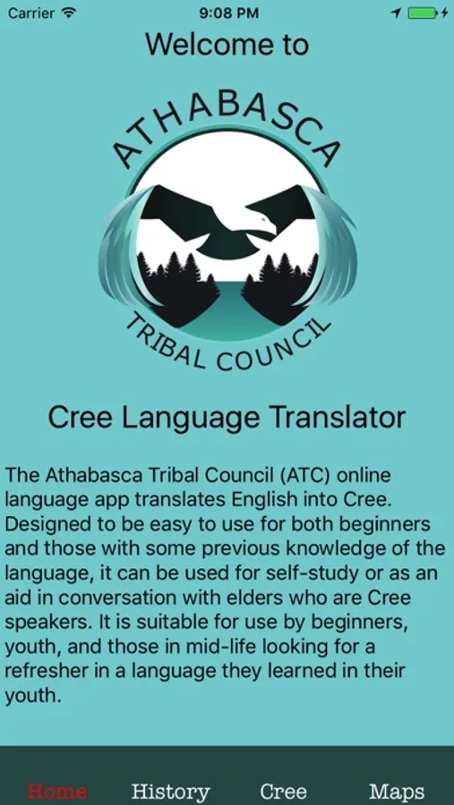 The Athabasca Tribal Council (ATC) online language app translates English into Cree. Designed to be easy to use for both beginners and those with some previous knowledge of the language, it can be used for self-study or as an aid in conversation with elders who are Cree speakers. It is suitable for use by beginners, youth, and those in mid-life looking for a refresher in a language they learned in their youth.
