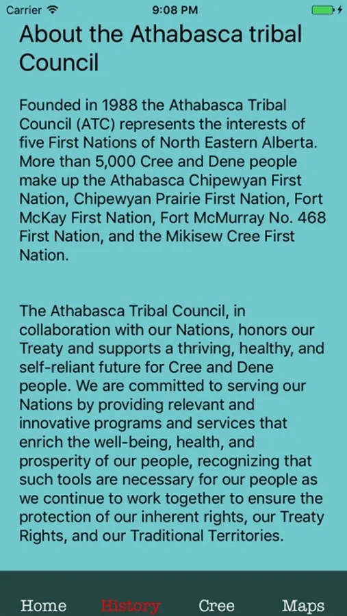 The app’s vocabulary includes important nouns, as well as words for medicines, numbers, directions, weather, the calendar, and parts of the body. The app focuses on Cree dialects of northeastern Alberta. It also includes an overview of the Athabasca Tribal Council, as well as maps and satellite images showing the locations of its five member First Nations in North Eastern Alberta. The app is part of ATC’s commitment to teaching and preserving the indigenous languages of northeastern Alberta.