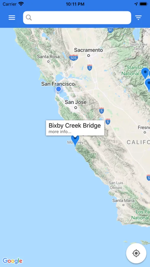 After subscribing, exit information is searchable, available for offline use, and reference images may also be downloaded for offline use. Google Maps may be launched directly from any exit page for routing.