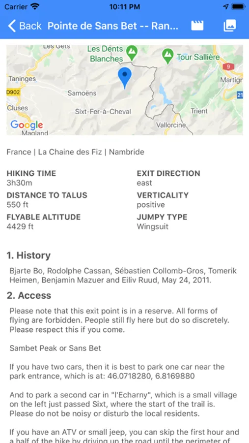 Your guide to BASE jumping exits, featuring hundreds of exit points with data, a map view of exit GPS locations, and the ability to bookmark favorite exits for offline use.