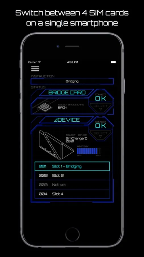 Insert the included bridge SIM card into your smartphone and up to 4 SIM cards into DELTA, then using the companion app you easily switch between each of your 4 SIMs. DELTA will transfer your SIM contents to the bridge SIM card via Bluetooth, providing an easy way to use multiple numbers or data accounts without needing multiple smartphones.
