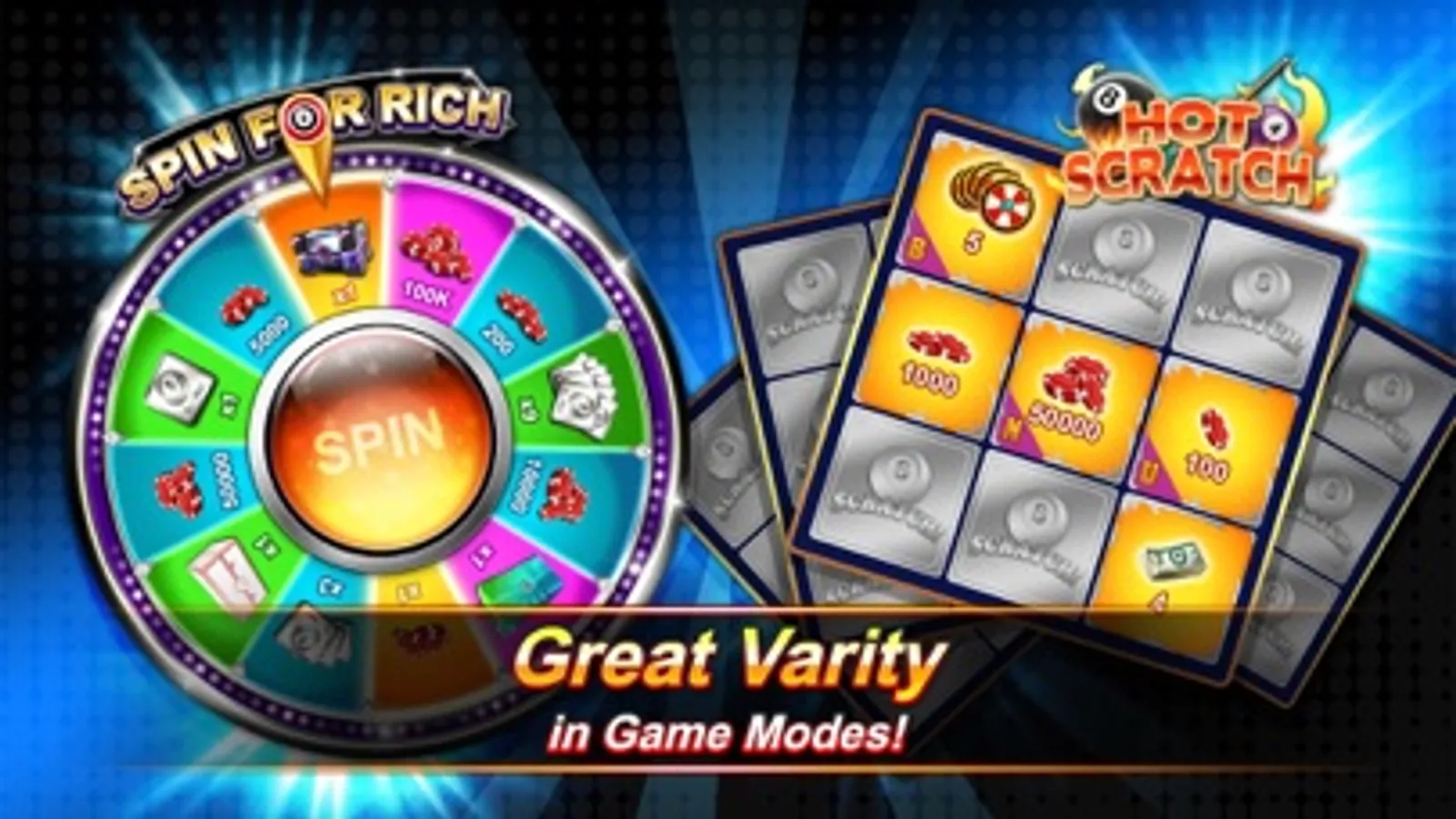 - Free to play! Login every day for free chips, treasure chests, cues, and other rewards!