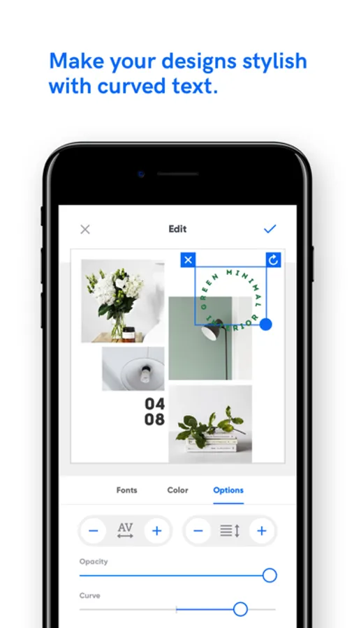 • Create curved text on your photos. You can bend the text from 0 to 360 degree as you want.