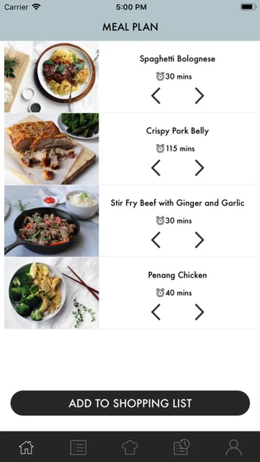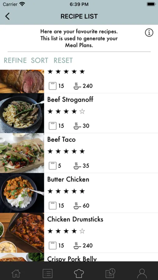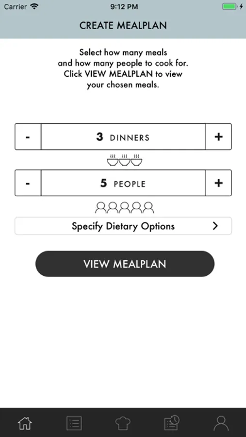 Meal History – Previous meal plans are stored in your meal history for later reference