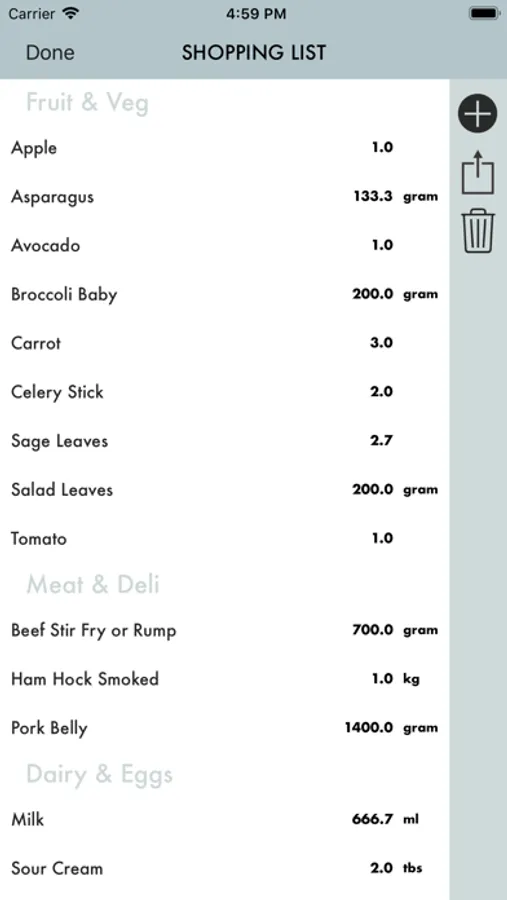 Shopping list – Create shopping lists that automatically organise and sort ingredients ready for your regular shop. Delete items as you go, edit to add additional groceries- or share your list for others to do the shopping for you